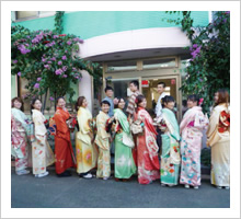 日本の正装と言われる振袖。あでやかな着物を着ていつもとは違ったひと時を過ごすことで、より日本への関心を深め日本語に取り組んでいくことができます。